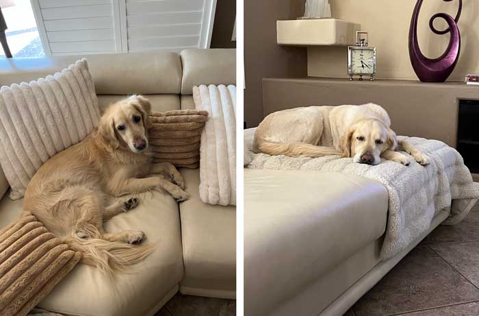 We adopted our beautiful boy from Rescue a Golden 6 1/2 years ago. When he came to us his name was Dexter, we renamed him Baxter. He was the sweetest most gentle soul in the world and we loved him dearly. Sadly, yesterday we had to walk Baxter over the Rainbow Bridge to be with my husband who passed away in February this year. Baxter had hemangiosarcoma which had metastasized into his abdomen, lungs and kidney. The two most precious beings in my life are together in heaven. My heart aches for both of them – I have the most wonderful memories to keep with me for ever. Thank you Rescue a Golden for bring Baxter into our family!