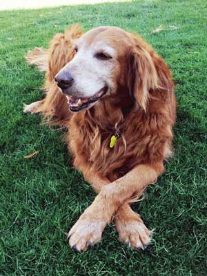 We adopted Macee from Rescue a Golden in the summer of 2012. She immediately become a member of our family and our other Golden, Gracie accepted her with open paws. Macee enjoyed trips to Rosie’s Dog Beach in Long Beach, CA swimming and playing fetch with the other dogs at the beach. She also enjoyed dog walks in the desert and loved to “sing” for her supper.