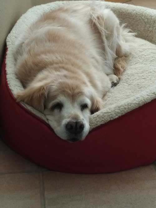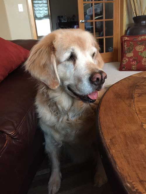 Tenzin was delivered to us at a 2+ year-old Golden sometime after Christmas in 2006. She was euthanized Sept. 25 at the ripe old age of 14 years 5 months due to issues arising from her advanced age. During the 12 1/2 years that we had her, she gave us nothing but companionship, laughter and of course endless love. She will be sorely missed by us, especially by her roommate Trevor who, a month before her passing, left for his first year of college.